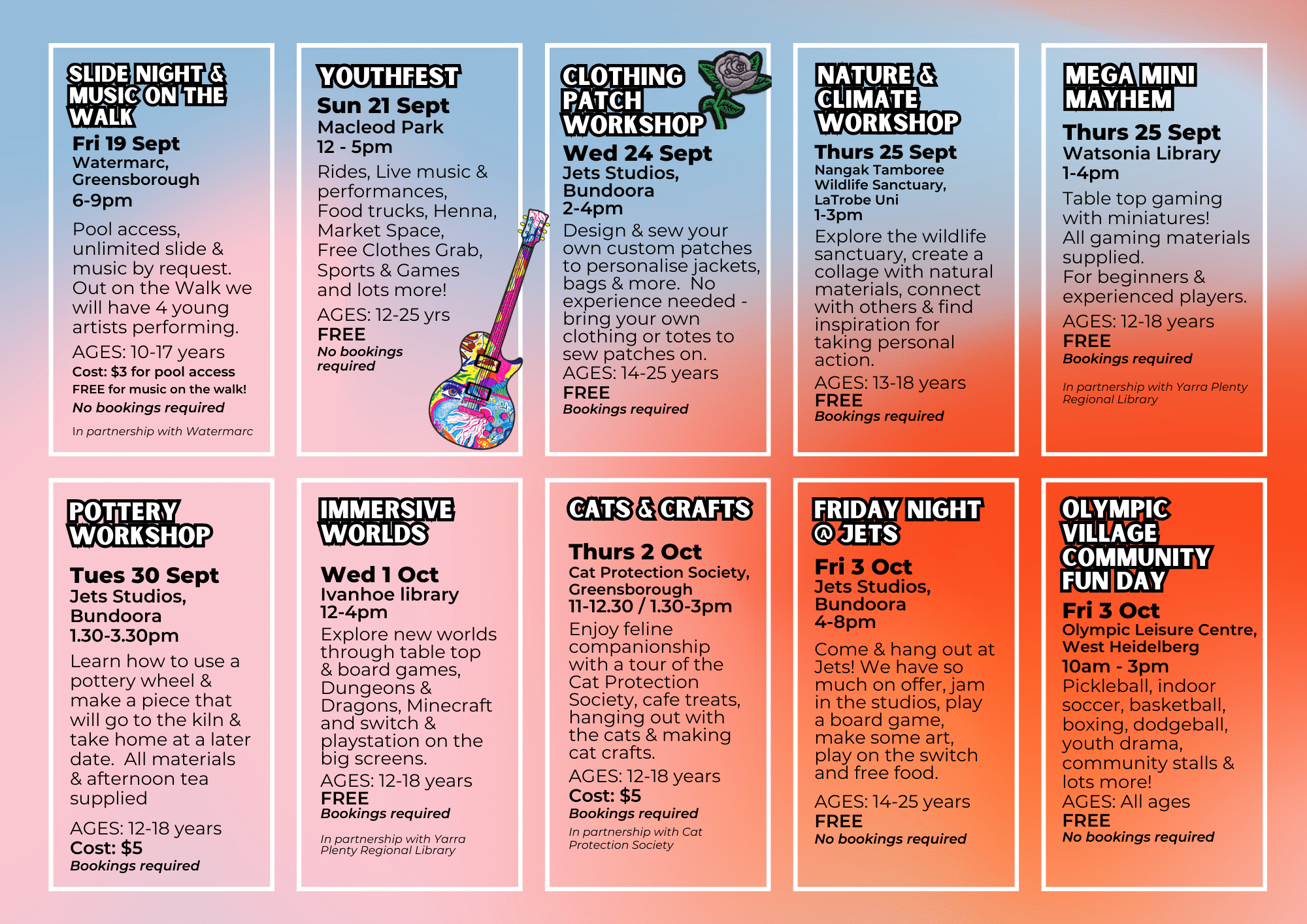 Pickleball, indoor soccer, basketball, youth boxing, dodgeball, youth drama, community stalls & lots more!